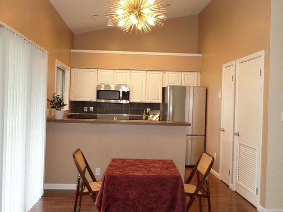 Spacious top floor unit with vaulted ceilings. Open floor plan. Great patio! Two bedroom and two full baths. Walk to shopping, restaurants, community center and parks.