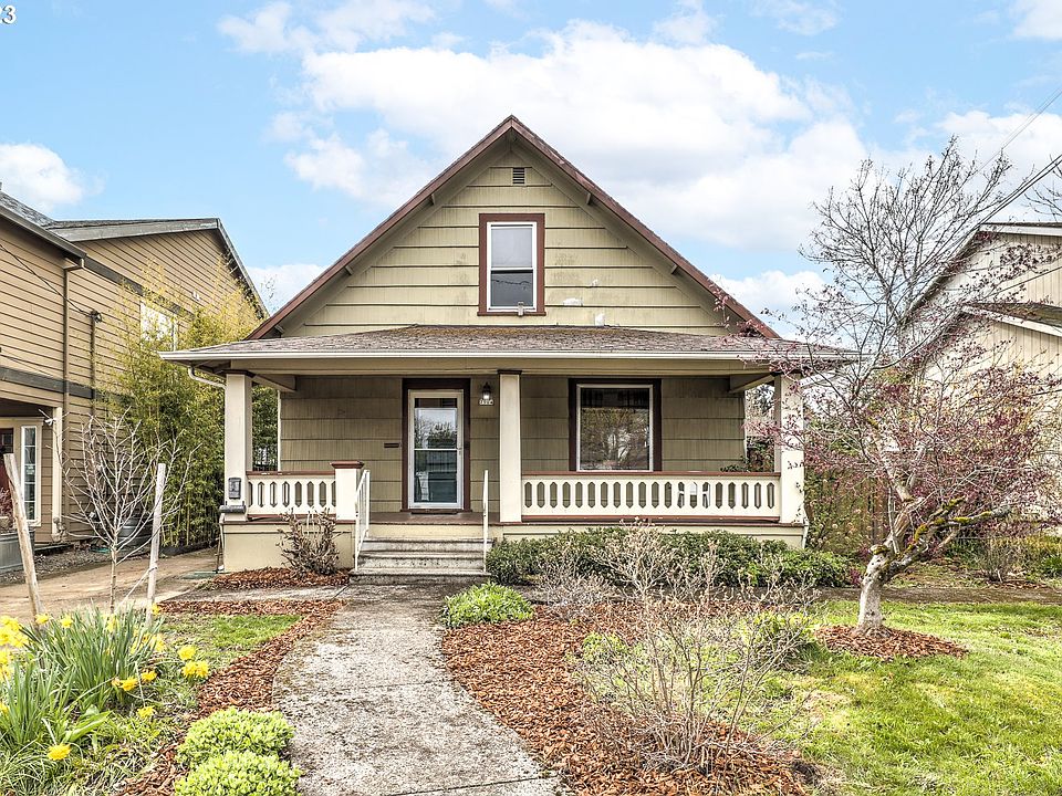 So much to love about this partially updated home simply brimming with character & possibilities! All the original charm - bay windows, high ceilings, hardwood floors & already updated kitchen. PLUS fabulous potential to develop/customize for your own needs & preferences! Livingroom with pellet stove, & hardwood floors. Remodeled kitchen with gas range, heated Marmoleum floor, canned lights & pantry. 2 bedrooms on main + utility room & separate mudroom w/exterior door to back deck. Upstairs has 3rd bedroom + space that begs to be made into a luxurious Primary Suite. Livable as-is but lookng for TLC & vision! New, boxed Pergo flooring to stay with house. Great Mt Scott location on quiet, low-traffic street! [Home Energy Score = 1. HES Report at https://rpt.greenbuildingregistry.com/hes/OR10214444]