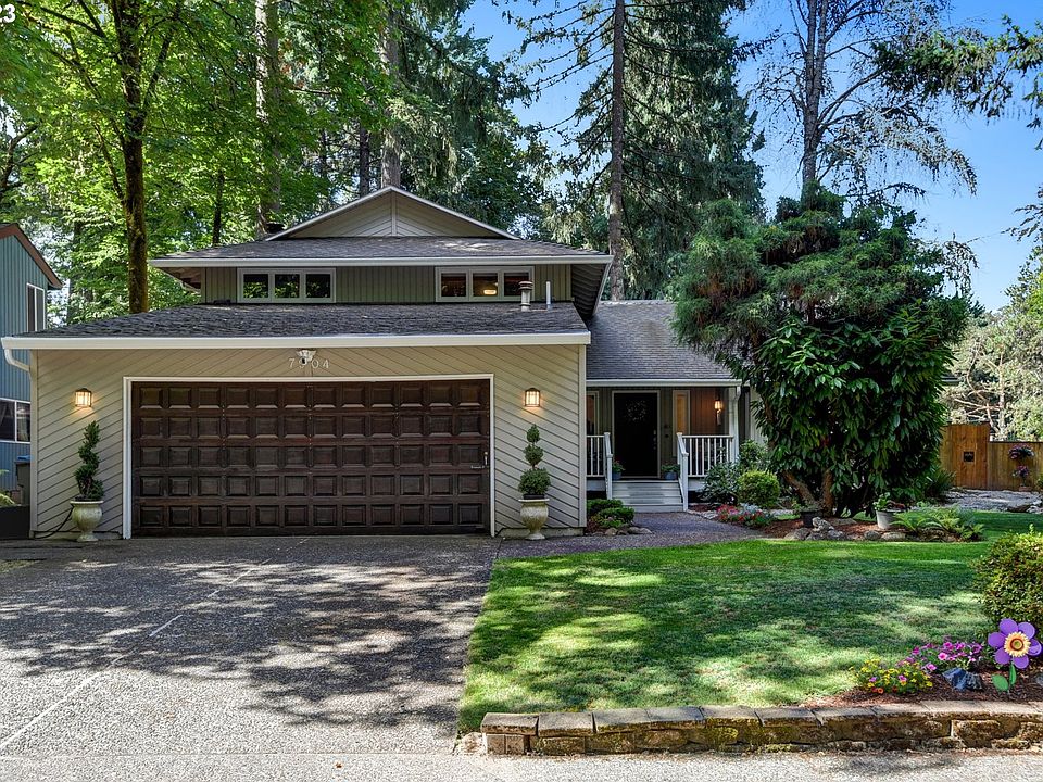 Contemporary gem nestled in highly desirable Kingsgate. Known for its park-like atmosphere, this tranquil neighborhood is steps away from parks and greenbelt trail access and is conveniently located minutes from dining, grocery and retail at Bridgeport Village. Situated on a large corner lot, this bright and spacious home is bursting with style, function and lots of fun! Features include vaulted and beamed ceilings, 3 fireplaces, tons of windows, ample storage and engineered hardwood floors throughout. A large bedroom and full bath on the lower main level is great for guests or multiple generations. Remodeled kitchen with granite countertops, stainless steel appliances, gas stove, in-island prep sink, eat bar and walk-in pantry. Remodeled primary suite is a true sanctuary with a huge walk-in closet, gas fireplace, balcony and ensuite bathroom with jetted tub and walk-in tiled shower. The backyard is the ultimate hang-out with hot tub and outdoor kitchen, huge deck and yard to spare. Fresh paint on main, new furnace and AC in 2022. Too many features to list here, please see Additional Features sheet for more details. Welcome home!