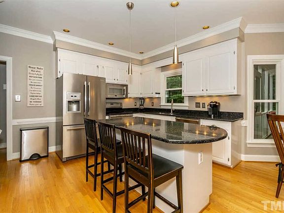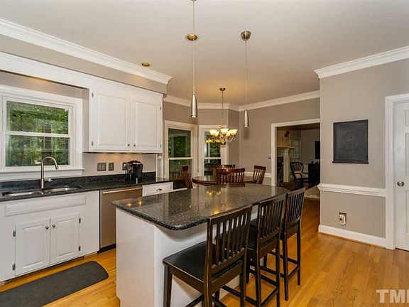 Desirable Stonehenge Beauty! 3BR+Large Bonus, Sunroom & Screened Porch! 2.5BA, 2Garage. Updated kitch w/ granite, SS Frigidaire Pro appliances, butler's pantry w/ wet bar & bfast nook! Special features include crown mold, wainscoting, built in bookshelves, HW floors, new carpet to name a few. Spacious master suite w/ gorgeous ensuite bath boasting marble counters, tile floors, jacuzzi corner tub and 2 closets. Ideal location near 440, 540, RDU, shops & restaurants. Walk to Lake Lynn & Comm Ctr. Home Warr