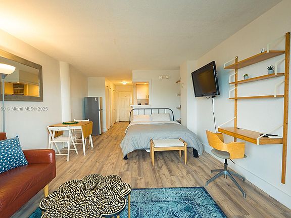 Beautiful first floor studio in the North Bay Village area of Miami. The kitchen has been updated with white hardwood cabinets and stainless steel appliances throughout. The unit has an open balcony facing the pool deck. One of the few buildings in North Bay Village that allow 30-day rentals and short-term rentals (Airbnb & Vrbo ) with a certificate of use license.