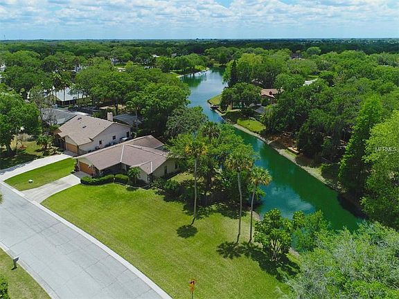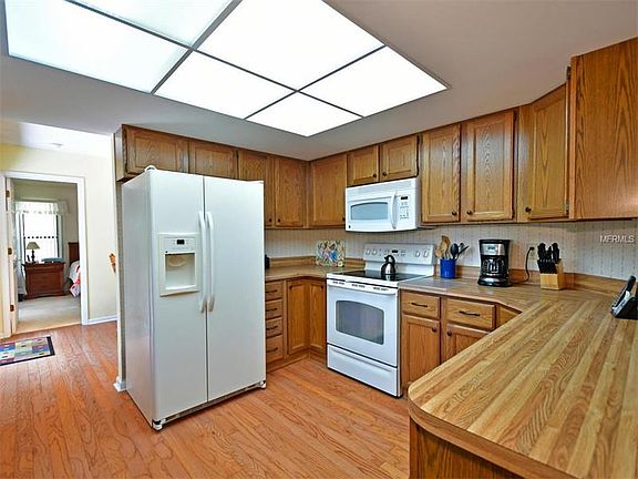 This home is situated on its own waterfront, park-like setting. A very unique property with several hundred feet running along the lagoon. Home offers split bedrooms, wood floors and wood cabinets. Screened and tiled lanai overlooking lagoon. Small wood dock. Woodlawn Lakes is beautiful community with easy access to U.S. 301 and easy commute to St. Petersburg and Tampa.