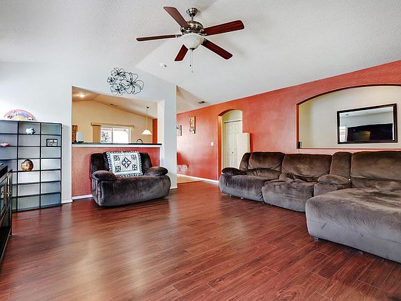 The second you step in the front door of this 1 story house, you know you are home. Light filled, with vaulted ceilings, add to the open feel of the floor plan. The eat-in kitchen is a chef's delight with tons of cabinets, Corian counters, an island & pantry. Fridge stays with the home. Study off of the living room could be enclosed to create a 4th bedroom or a private office. Primary suite is to the back of the house for privacy, complete with a garden tub. Custom built, covered patio is off of the kitchen perfect for BBQ's. Easy maintenance yard with a high wall in back for privacy. Stay cool in the summer with refrigerated ac. Lovely planned community with walking paths, & parks to enjoy.