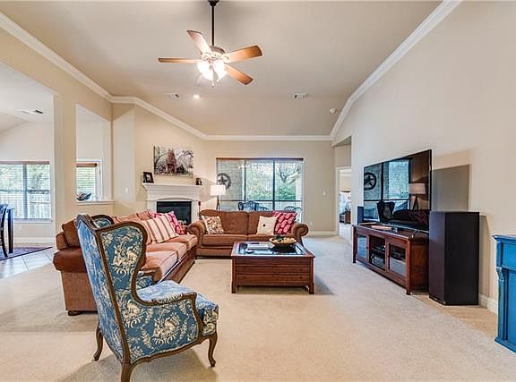 Absolutely gorgeous Fedrick Harris (High-end Newmark) Winchester, model home floor plan in quiet gated golf course community. High ceilings, open plan with an entertaining flow thru the home to the outdoor patio with fireplace and grill. 4 large beds with 3.5 baths in this well thought out plan with a guest suite/full bath. End of a deep cul de sac gated street. Perfect for lock n leave retirees or young professionals. The back yard is just waiting for a pool! School bus picks up kids right outside! : )