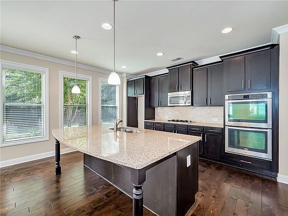 Beautiful home in fabulous Jamestown community!! This 4 bed/3 bath home is located in top rated school district, the newly built Halcyon, Greenway paths and more!! First floor has hardwoods throughout, features an open floor plan, kitchen includes island, plenty of pantry space and stainless steel appliances, double oven, bright and open kitchen has a view to the dining and living space. Enjoy the oversized master with relaxing sitting area, walk in closet and large master bath. Master bath includes double vanity with separate tub/shower. New carpet on entire 2nd floor (pictures are of old carpet) The additional bedrooms are spacious and can be used as an office or additional space as well. 2 of the secondary rooms share a jack and Jill bathroom and the 3rd room has a bathroom of its own. Nicely kept yard perfect for relaxation, one of the largest yards in the community, large enough for a pool! Community is gated with swim, tennis, trails and hwy 400 nearby. Don't miss this great home!! Community maintains landscaping!