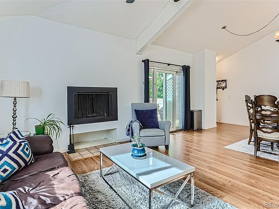 Light bright and minutes from the Cherry Creek Trail. This open concept condo with a huge patio, fireplace, large primary bedroom is ready to move in and make it yours. Vaulted ceilings welcome you into this second floor unit, open kitchen and upstairs loft bedroom with skylights and a second bathroom. Huge patio with room for large table and BBQ gives you private outdoor space to entertain or relax after work. The well maintained condo complex has beautiful grounds, a community pool and clubhouse. Spacious one car garage with shelves and additional storage closet is ready to protect your vehicle and all of your toys. Just minutes from Cherry Creek Trail, bike to Cherry Creek State Park or downwown, go for a run or take a walk steps from your front door.