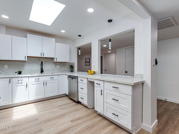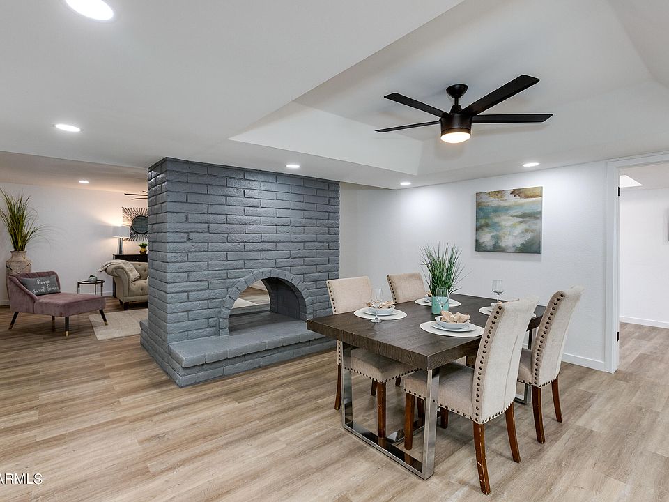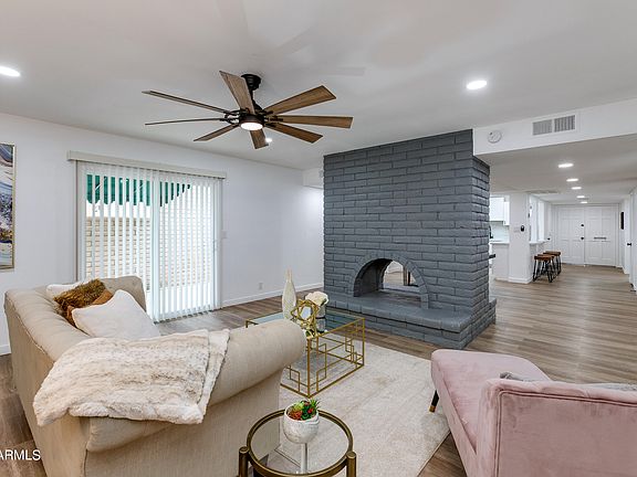 Completely remodeled in all of the latest colors and finishes AND in a premier area of Scottsdale! Some of this homes most notable features include NEW Roof & resurfaced flat roof, NEW AC unit with programmable thermostat, NEW hot water heater, NEW wiring & led recessed lighting throughout, NEW light fixtures and ceiling fans, NEW sliding doors, NEW windows (except one), all NEW plumbing fixtures and toilets, all NEW cabinetry, NEW laminate wood floors throughout (no carpet), fresh paint with accent walls. Double door entry welcomes you in to the spacious foyer. The brand-new kitchen features white shaker cabinets, quartz counters and stainless appliances - including the fridge! Open Floorplan with a two-way brick fireplace dividing the dining room from the family room. Split master suite with sliding doors to the back patio. Gorgeous spa like master bath with beautiful marble look tiled shower, double sinks and a spacious walk-in closet. Two additional good-sized bedrooms and second bath that has also been completely remodeled. Two car garage with direct entry to the home. Washer and dryer included! Private backyard with a covered patio. All this in a perfectly situated community in the heart of Scottsdale that is convenient to dining, shopping, parks, schools, hospitals and the 101! PLUS a community pool and work out room!