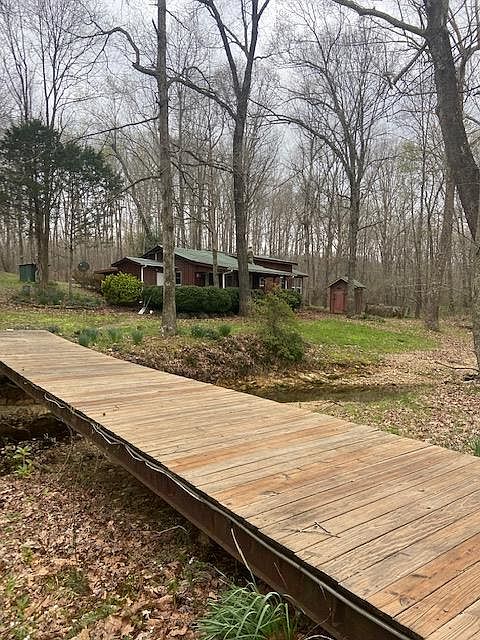 This is a unique piece of property which is very hard to find. It features a cabin style house, a barn, a outbuilding, a year round creek which runs in front of the house with a nice walk way leading to the house. Has pasture and woods .This property has a metal roof and newer windows. There is a sunken tub in master bath and a shower with ceramic tile.There is backup propane wall heaters.