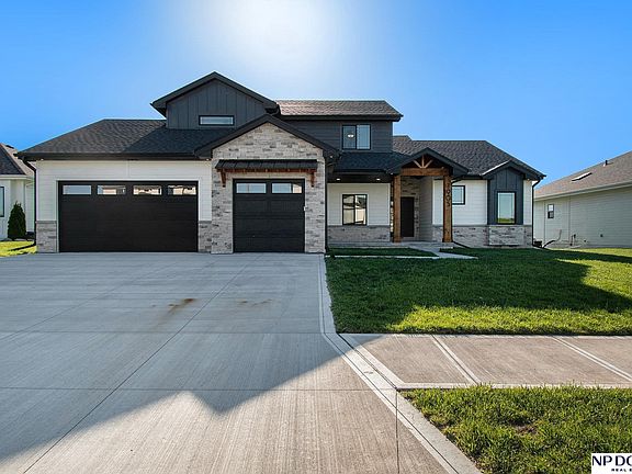 This is the one you've been dreaming about! Gorgeous 1.5 story walk-out with custom cedar posts at entry, stone detail, covered back deck and lots of custom details throughout. Open concept floor plan with lots of natural light, large kitchen with walk-in pantry, large island, granite or quartz countertops, custom cabinets, under cabinet lighting-all included! Main floor suite with walk-in shower, dual sinks, tile floors and walk-in closets. Main floor laundry, main floor office/flex room and custom ceiling details in primary bedroom and living room. Second story features 3 bedrooms with walk-in closets, 2 bathrooms and a large bonus room.