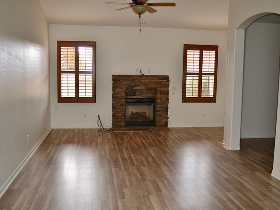 Beautiful ''Tucson Plan'' 1705 Sq. Ft. 3 Bed, 2 Bath, 2 Car Garage on a .18 Acre Lot. Front Covered Patio, new interior and exterior paint, central kitchen for great entertaining, wood shutters throughout, center island with separate dining area, electric range, dishwasher. Master suite glass enclosed shower, vanity cabinetry, and large walk-in closet. Great room includes, tiled gas fireplace, art niche and mantle, large view windows designer lighted ceiling Fan, 8' sliding glass door that opens to covered patio. Backyard w/8' side gate, privacy block wall fencing and beautiful flower covered back yard.