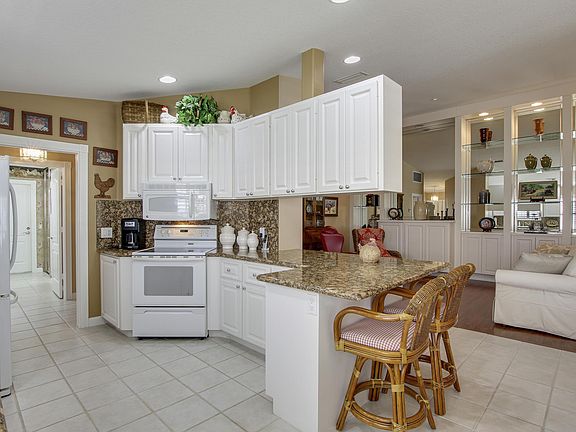 Welcome to this meticulous home in the highly desired Riverwalk. 2/2 with 2 car garage home boast white cabinets, granite countertops, central vacuum for tile and wood floors. This desired floor plan see's that every room is spacious. Sit and enjoy your covered porch that has an extended screen patio with views of the lake. Community offers many amenities from pool, tennis, fitness center, post office, restaurant, and more.