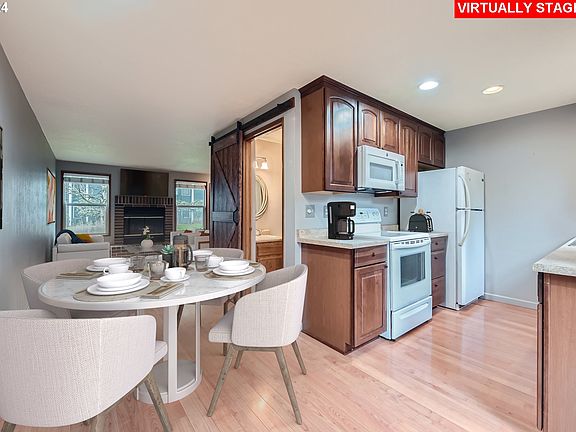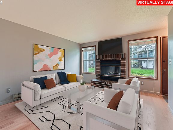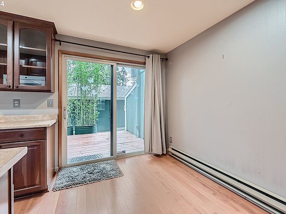 Welcome to your new home in Tigard's charming Bonita Firs Village Condos! This inviting 2-bedroom, 1.5-bathroom condo boasts recent upgrades including a complete kitchen remodel and newly installed laminate floors on the first floor, carpet on stairs and bedrooms, and tile on the upstairs bathroom floor. Enjoy the serene ambiance with a large private deck off the kitchen, featuring beautiful 10-foot bamboo in steel containers, perfect for outdoor relaxation. Plus, cozy up on chilly evenings by the wood-burning fireplace in the living room. Surrounded by Fanno Creek green space and just steps away from the Fanno Creek trail, this peaceful retreat offers the ideal blend of nature and convenience. With shopping nearby, and easy access to the freeway, you'll love the quiet neighborhood and all it has to offer. HOA fees include water, sewer, trash, cable, management, common area and landscaping.