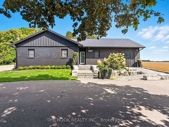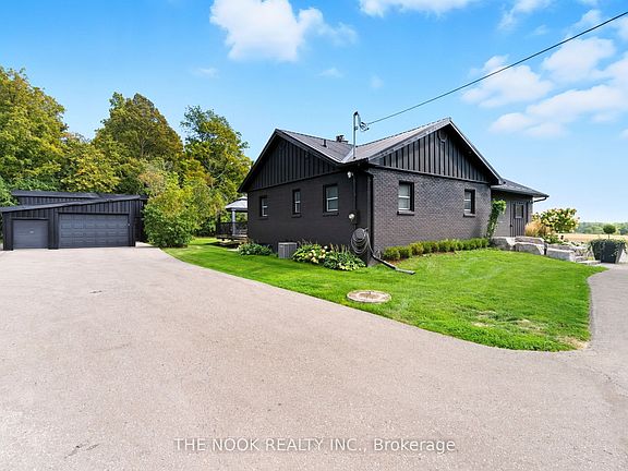 This updated, all-brick bungalow sits on a private 1-acre lot just north of Brooklin and minutes to Hwy 407 for a quick commute. Perfect for the car enthusiast, hobby mechanic, or anyone wanting serious garage space, the property features a 420 sq. ft. insulated & heated workshop for year-round projects, along with a massive 3-car garage (over 1,400 sq. ft. in total). Two electronic gated entrances provide secure access, parking pad, the circular driveway plus the laneway can easily accommodates 20+ vehicles, with room for trailers, toys, and guests. Stone steps and landscaped entry lead to a welcoming foyer that opens to light-filled living spaces highlighted by multiple built-in electric fireplaces and a spacious open-concept layout with modern updates throughout. The kitchen boasts abundant cabinetry, high-end stainless steel appliances, and a walkout to a huge deck with two gazebos overlooking the expansive lot, perfect for summer entertaining. Off the living room you will find the bright 4-season sunroom, featuring brand-new automatic blinds, a propane stove, wall AC, and 2 walkouts. Whether you're a plant lover looking for the perfect spot for your greenery, dreaming of a peaceful yoga or reading room, or wanting a serene office surrounded by nature, this versatile space invites you to relax and recharge.The primary bedroom includes an ensuite bath where the mirror has a built-in TV for catching up on your favourite shows while soaking in the tub, while the second bedroom offers his-and-her closets. The lower level provides even more living space with an open-concept rec room combined with a bedroom, laundry, and a large storage/utility room. With most updates completed within the last three years, this property is a rare find: an updated country retreat with the ultimate setup for car lovers, mechanics, or anyone craving a serious man cave and workshopall while enjoying the peace of country living just minutes from the city.