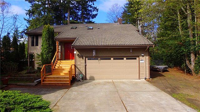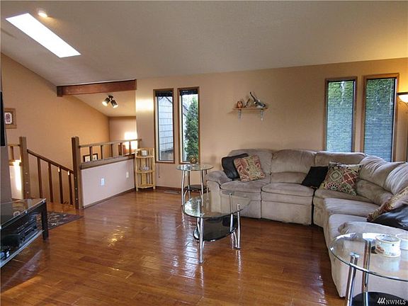 Don't miss this spacious northwest contemporary split level with lots to offer. Minutes from Boeing, sound, and ferry this home features a wonderful floor plan with vaulted ceilings and 2 wood fireplaces. Upper dining and family rooms open to nice sized deck for entertaining and seasonal peek-a-boo sound view. Lower level rec room opens to large deck with hot tub and fenced backyard. Plenty of space for parking and room for an RV or boat. Fresh exterior paint and new front deck. A must see!