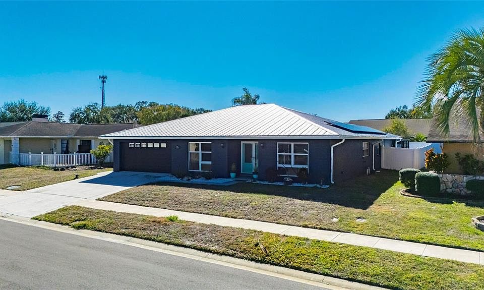 Gorgeous updated 4-bedroom, 2-bathroom, 2-car garage, POOL home in the well-known Radcliff Estates Neighborhood! This beautiful home offers a little over 2,000 Sq Ft of an open floor plan for comfortable living space and the ideal layout for a relaxed florida style living. The home features an updated Kitchen with Stainless steel appliances, and recessed lighting. Updated bathrooms, New tile flooring, and a private fenced in backyard with your very own pool and spa with a covered sitting area and complete outdoor kitchen with stainless steel appliances for a perfect entertaining environment whether it's relaxing after a long day at work or hosting a party with family and friends. The exterior of the home was just painted. The pool, outdoor kitchen, seating area, and metal roof were all completed in 2022. The Water Heater is brand new. This home has comfort, functionality and most of all is located just minutes from Downtown New Port Richey, shopping, dining, parks, Gulf Coast beaches and Alt 19 for easy Access down to Clearwater and the Tampa Bay area.