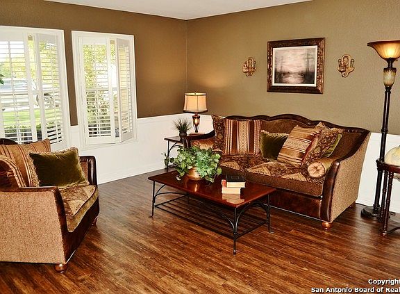 Wonderfully updated home on a nice oversized cul de sac lot. Plantation shutters. Wood laminate floors. Master suite downstairs. 3 bedrooms up plus gameroom. (could become bedrm 5). Could easily have an office, by adding wall & doors to living rm off entry. Nice kitchen is open to family room & has gorgeously updated cabinetry, granite countertops & stone backsplash. Cozy front porch. Freshly painted out & some in. Backyard fruit trees & playscape (negot.). Friendly n'hood near RAFB. Pls contact Chris 210-213-2432