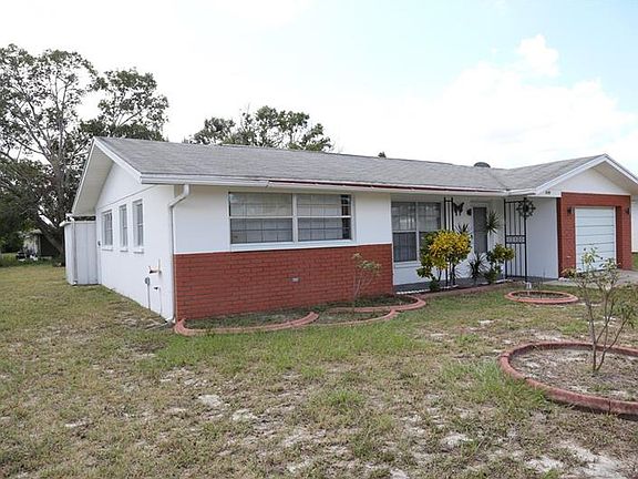Lovely 2 Bedroom, 2 Bath home in Jasmine Lakes. A Living Room/Dining Room Combo with nice wood flooring throughout. Enjoy a new remodeled Master Bath that is being completed right now. Kitchen features Dishwasher, Range and Refrigerator. Sliding door leads you to the enclosed Lanai (Easy conversion into a Third Bedroom) with a pass through. This 1 Car garage has plenty of storage space with Washer and Dryer hookup, side entry and storage shed. Plenty of room to run in the back yard for holiday's and family events. Shopping, Restaurants and Hospital close by. Hudson Beach within minutes for fun on the Beach. Schedule a viewing today!