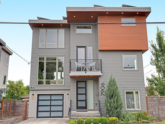 Welcome to your dream home, where sustainability meets sophistication! Step into elegance with light filled rooms, walls of windows and soaring ceilings that amplify the sense of space. The contemporary design is accentuated by clean lines, providing an aesthetic that is both sophisticated and timeless. Sun-drenched interiors illuminate every corner, highlighting the thoughtfully designed spaces, and creating a warm and inviting atmosphere. The flow between living, dining, and kitchen makes entertaining a breeze, where you experience a harmonious connection between spaces, perfect for gathering with family and friends. Nestled in the heart of our vibrant Kenton neighborhood, this contemporary masterpiece combines luxury with responsible living, offering solar panels, tankless water heater and high-efficiency furnace and air conditioning. The ground level offers exquisite flexibility; channel your creative energy, find the ultimate office in-home, or have the ideal separate living setup with bedroom, bathroom and living space for multigenerational living or private guest quarters. With its seamless floor plan, energy efficient upgrades and high-end finishes throughout, this home redefines modern living while elevating your lifestyle. [Home Energy Score = 8. HES Report at https://rpt.greenbuildingregistry.com/hes/OR10177247]