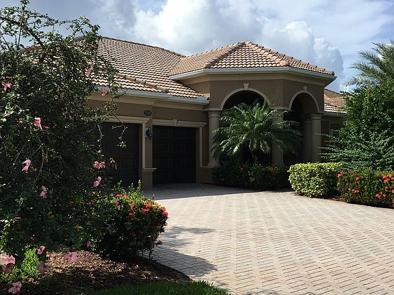YOUR OUTDOOR PRIVATE PARADISE AWAITS!! You simply will not find another property with an outdoor living space like this! OVER 576 SQ FT OF COVERED CUSTOM OUTDOOR LIVING SPACE! An extended tiled roof covers the perfect place for dinners, game nights and Florida living at it's best!! Featuring a large outdoor kitchen with lots of cabinet space, Jenn-Aire Grill, fireplace, full size frig, wine frig, sink and built in sound system. Lets not stop there because the good times will continue with the large lanai surrounding the impressive POOL AND SPA! It just doesn't get any better than this! Entertain your family and friends or sit back, relax and enjoy your picturesque water and golf views..... Overlooking the 3rd hole of the Tributary course, this GOLF INCLUDED Doral model in River Strand Golf and Country Club offers so much living space! With 4 bedrooms, 3 bathrooms, a large kitchen and family room as well as a formal living/dining area this floor plan has something for everyone! Enjoy the lovely PECAN WOOD FLOORING in the main living areas and office/4th bedroom. This residence also features a 3 car garage, custom paint and window treatments throughout and a recently painted exterior. Step outside and explore the wonderful gated maintenance free community of River Strand! Offering 27 holes of Arthur Hills designed golf, a CLUBHOUSE with both restaurant and grille room, 2 community pools and spas, tiki bar, 2 fitness centers, tennis and pickle ball courts and social activities all year long! Simply everything you would want in a home, this is truly a special property! Located close to I-75, the new Costco and some of the best beaches in the U.S.A.! Once you experience River Strand at it's best you may never want to leave!