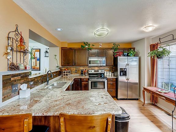 Bright contemporary 3 bedroom, 4 bath unit now available in the popular Millbrook community. Updated flooring includes new carpet and new laminate wood floors. Gorgeous kitchen features expansive granite counters with room for seating, stainless appliances and stylish backsplash. The interior has been recently painted with attractive custom colors. The main floor bath has been updated with a new vanity and tile floor. Upstairs you will enjoy a spacious master bedroom with a 3/4 bath as well as a secondary bedroom and full bath. The basement has been finished and includes a conforming third bedroom and 3/4 bath as well as laundry and storage.There is a reserved parking space that is next to the garage and both attach to a private fenced patio directly behind the unit. If you like hiking and biking, enjoy the trails at South Platte Park and Chatfield State Park as they are very close. Also conveniently located to schools, shops and the Sante Fe/Mineral light rail station.