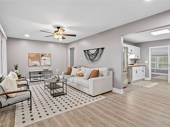 This spacious 4 bedroom plus an additional nonconforming bedroom, 2 bathroom ranch is tucked on an impressive 9,600 sf lot & surrounded by mature trees. Step inside the impressively spacious open floor plan with natural light in every corner, This home is meant for entertaining/hosting  events. The main level offers 3 bedrooms, beautiful tiled bathroom,  a large eat in kitchen, formal dining room, sunroom and two living rooms. The kitchen includes  plenty of prep space, white cabinets and stainless Steele appliances, this room is truly the heart of the home. Downstairs is a huge rec-room space that could be an excellent cinema room, playroom, or home workout center; with another bedroom, bathroom, & non conforming bedroom in the walkout basement. Other updates include roof replaced in 2022 by prior owners, brand new flooring, new doors, brand new water heater and more!  All information obtained from Seller and public records.
