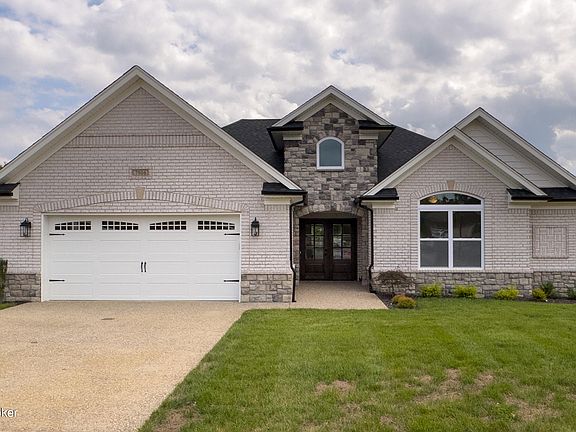 Welcome to 7906 Wagon Trail Trace, a stunning new construction home located in the heart of Fern Creek. Nestled on a quiet cul-de-sac, this modern craftsman-style ranch boasts over 1,600 square feet of thoughtfully designed living space. Step through a graceful arched entryway into a bright, open interior featuring durable LVP flooring and an expansive layout ideal for both entertaining and everyday living. The spacious great room is bathed in natural light from oversized windows, creating a warm and inviting atmosphere. A coffered ceiling adds architectural elegance, while a cozy fireplace with built-in shelving serves as the perfect focal point for both relaxing evenings and lively gatherings. At the heart of the home is a chef-inspired kitchen, equipped with gleaming granite countertops, classic white cabinetry, and high-end stainless steel GE appliances. A pink subway tile backsplash adds a bold, playful touch of personality, making the space feel both modern and uniquely inviting. The adjoining dining area, with its picturesque backyard views, is the perfect spot for enjoying meals with family and friends. The luxurious primary suite is a private sanctuary, highlighted by a tray ceiling, a spa-like ensuite with dual vanities and a walk-in shower, and a generously sized walk-in closet. A second bedroom, complete with a vaulted ceiling and its own walk-in closet, adds charm and functionality, while a third bedroom and an additional full bath provide ample space for guests or family members. Practical touches include a convenient drop zone off the garage and a beautifully designed laundry room. Beyond your front door, the Fern Creek area offers an abundance of nearby amenities. Spend your weekends exploring the scenic trails, open fields, and natural beauty of The Parklands of Floyds Fork, including Broad Run, Turkey Run, and Pope Lick Parksall just a short drive away. Enjoy a variety of shopping and dining options moments from home. Don't miss the chance to make this brand-new home yours, where modern comforts meet a vibrant Louisville lifestyle. Your next chapter begins here!