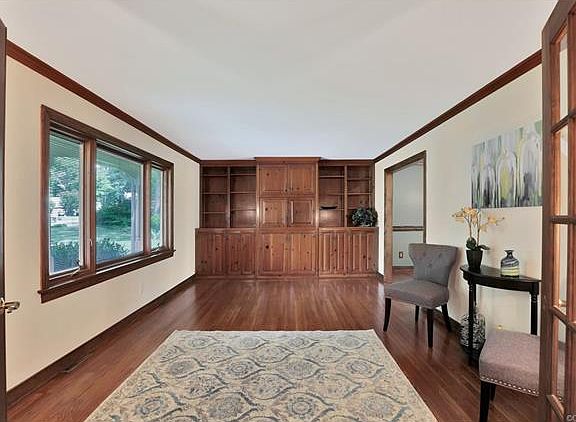 Wonderfully maintained home with numerous updates and upgrades! RENOVATED kitchen with granite countertops, island, newer appliances, gas stove, pantry with pull out drawers, ceramic tile flooring and large dining area! The master bedroom offers TWO closets and a RENOVATED bath with glass shower and ceramic tile surround and flooring. There are three additional bedrooms with hardwood flooring and ample closet space. The living room has built in bookcases and a tv cabinet with pull out drawers and the den offers a wood burning fireplace. Enjoy the privacy of the nicely landscaped backyard on the deck or raised patio. Important features to note are the newer HVAC, newer gas furnace, newer appliances, a whole house humidifier, infrared light air purifier, added insulation to the exterior walls for noise control and energy efficiency, and yard irrigation. Welcome home!