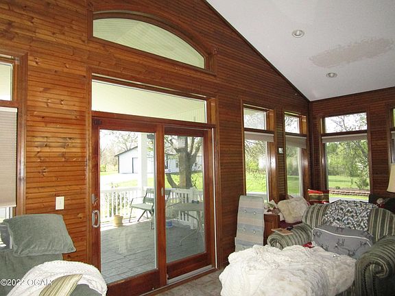 Just minutes from Town. House sits on sloping hill, setting on almost 5 acres with paved asphalt circle drive. Property has endless possibilities. Has a detached 24x45 shop with work bench. Anderson windows, large walk in pantry that is also a storm shelter. Amazing sunroom with built in bench seating and storage. Extra large covered patio with stamped concrete and with built in patio are with custom built propane fire pit and garden area. 2022-05-16