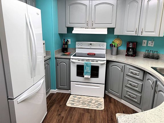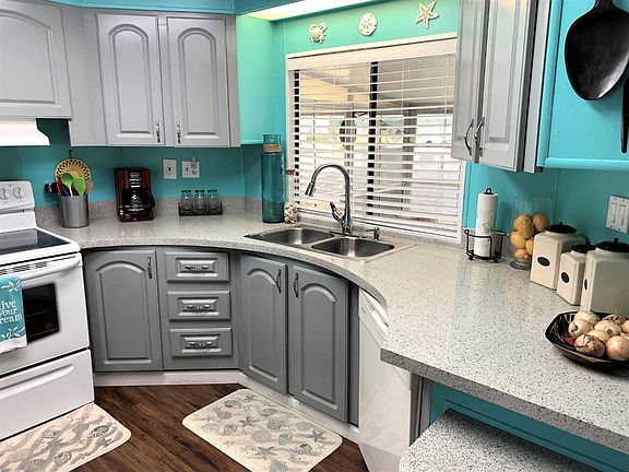 JUST LISTED PARTIALLY FURNISHED - $49,900 This home features: 1. Beautiful home that's Move-In Ready - just Unpack and go to the Pool or Beach 2. New AC and New 10x12 shed. 3. Beautiful NuCore Laminate 100% waterproof flooring that is not only extremely durable but easy to clean. Bedrooms are both laminate. 4. Drywalled living and dining rooms 5. 2" blinds and 6 panel doors throughout the home 6. A Key West kitchen with the circular layout that's very popular here. If you have been to Key West you know what I'm talking about with the colors. You will feel the Keys when you cook in this kitchen. There are refaced cabinets, large new refrigerator, and lots of counter and storage space 7. Open floor plan from the dining room to the living room 8. Large Master Suite that gives you a Spa feel. 2 walk-in closets and plenty of storage 9. There is a bright and airy sunroom with a view of the lake, a great craft room, office or man-cave with gorgeous Bamboo flooring 10. There are two screened lanai in the back, very private and a wonderful place to watch the White Pelicans when they come and visit. The back lanai is 11'x18' and the connecting lanai is 21'x12' large enough for a party with all your friends. 11. 2 storage sheds the rear shed has enough room to put extra chairs and things for you friends and grandkids when they visit. 12. The main storage room has an extra refrigerator, washer and dryer. Washer is 2 year old 13. Near harmony Hall and Pool where most events are held 14. Gorgeous views of the lake. They are putting in new homes across the lake and the sod should be in place soon. ACT FAST & CALL TODAY!! Don't forget to ask about the FINANCING available on this home. Colony Cove is an age qualified (55+) five-star resort community of manufactured / mobile homes. The "Cove" boasts 5 clubhouses, 5 heated pools, a riverfront pavilion and private fishing pier, a private marina, a fenced dog park (very pet friendly), tennis, shuffleboard, new pickleball courts, 2 new fitness rooms, 24 hour patrol, clubs for every interest, and much more. There are daily planned activities throughout the park. Bottom line, if you get bored here, it's your own fault!! The lot rent in Colony Cove is based on the homes' location. While the monthly rent may not be the lowest around, it's by far the best value for the money. Not only does the monthly rent cover all of the amenities of the community listed above, it also covers almost all other monthly expenses such as; water, sewer, trash pickup, all property taxes, lawn maintenance. . .pretty much every monthly expense except electricity and internet. The current lot rent on this home is estimated at $1061 per month