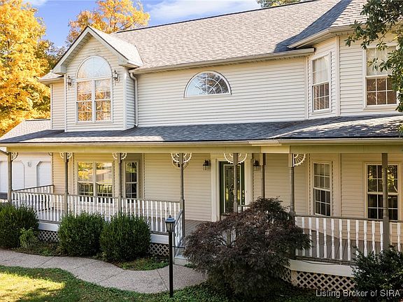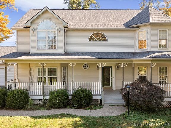 Welcome to your private oasis in the Hidden River Valley Subdivision where the covered porch seems endless! This hidden gem boasts 4 bedrooms, a spacious 3-car garage, and an inviting wrap-around porch, providing the perfect blend of comfort and tranquility. Experience the freedom of no HOA fees as you enjoy over an acre of beautiful land. Enter through the back door, and notice the large laundry room. Next, find the heart of this home in the expansive eat-in kitchen with appliance suite and nice pantry opens to the living room with fireplace (gas-insert). Retreat to the main floor primary suite, offering a separate shower, soaking tub, water closet, and walk-in-closet. Upstairs, discover three additional bedrooms, another tile bathroom and a versatile family room. The unfinished basement, a blank canvas brimming with potential to become a personalized entertainment haven, home gym, or any other vision has built in storage and a sump pump. Don't miss your chance to own this remarkable home that truly has it all – schedule a showing today and experience the magic of Hidden River Valley living for yourself!