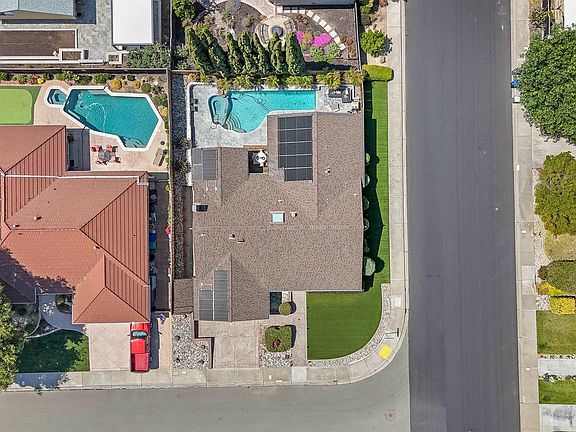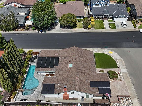 Immaculate single story Stoneridge home on a rare corner parcel in the heart of the Westside's most desirable destinations. Powered by owned solar, pride of ownership beams here with upgrades galore, including fresh interior paint, rich luxury vinyl flooring, newly carpeted livingroom and bedrooms, refined lighting and finishes, plus newer dual paned windows accented by custom wide louver shutters. The expansive floor plan features a bright livingroom, formal dining room, and an oversized primary suite retreat with bountiful walk-in closet space and patio/poolside access. An open concept kitchen/family room is a natural gathering spot as the skylight accentuates modern granite counters, stainless steel appliances and bar seating. An expansive family room is accented by a brick fireplace, a gracious bay window and French doors that beckon you to a refreshing outdoor oasis. The sparkling pool-spa combo and spacious decking provide the setting for entertaining and relaxation alike. A newer garage door opener, furnace and AC, and the low maintenance grounds provide ultimate comfort and convenience. A four-time California Distinguished School, award-winning Lydiksen Elementary is blocks away. Near Muirwood Park, Stoneridge Mall, BART, the new Costco, and the crossroads of 580 and 680!