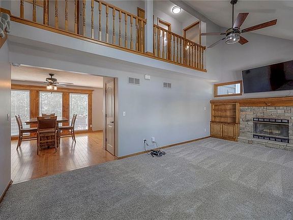 This exceptional 2-story residence seamlessly blends space, comfort, and modern upgrades. Step into the inviting living room with its vaulted ceiling, wood-burning stone fireplace, built-in shelving, and expansive wall of windows that flood the space with natural light. The expansive kitchen and dining area feature floor-to-ceiling windows, elegant wood floors, a pantry, and a peninsula offering extra counter space for all your culinary needs.