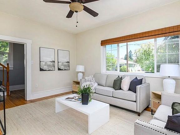 Fresh exterior paint. High ceilings, gorgeous vintage details, fir and oak floors. 2006 remodel. Double-paned low-energy windows. New Hi-eff heat pump/AC. Large fenced backyard w/ shady maple and flowering trees. Lower level bonus room with laundry. Walking distance to great parks, food carts, and settled on a quiet street, this North Portland gem is a cute retreat. Quick bike ride to downtown St. Johns. Close to Univ of Portland & 1 block from bus and local shops. Electric, water and gas are paid by tenant. $47/month garbage. Perfect front porch for sipping coffee or strumming the guitar. Newer electrical, gas heat, and loaded with 1904 vintage charm.