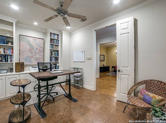 Charming Hill Country ranch on .76 acres in the desirable Windermere Estates! Perched on one of the highest elevated lots in Fair Oaks, enjoy bluff views from your large covered back porch and patio or from your water and wildlife friendly front yard. Lovely hard wood floors and tile throughout. Large family room with floor to ceiling stone fireplace, exposed beams, and wall of windows is the heart of the home. 14x7 craft/hobby room w/ AC off garage. Flexible room design. Close to Country Club and in the exemplary Boerne ISD.