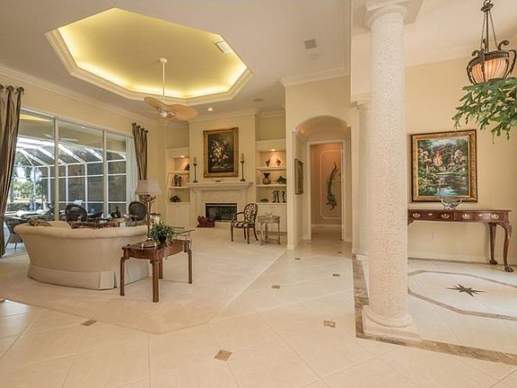 This custom Todd Johnston home is amazing...professionally designed w/luxurious appointments, a warm palette of rich neutral colors & expansive Strafford IV floor plan. With over 4,700 sq. ft. under air, this stunning home offers large rooms & exceptional features...the foyer entry is enhanced w/marble inlay flooring, custom designed window treatments throughout, custom lighting and moldings. The gas fireplace in the living room is flanked with fossil stone columns, custom wood cabinetry & glass shelving. Ornate fossil stone columns also grace the expanded formal dining room w/flooring of diagonal tile w/marble insets. The gourmet kitchen features crafted wood cabinetry, granite, GE Monogram appliances including a 6-burner gas range, warming oven, Sub-Zero refrigerator, island, built-in desk/work area & aquarium windows overlooking the screened lanai & beautiful lake views. The kitchen opens to a spacious family room with 10-ft. sliders opening to the lanai area for easy access to the pool & outdoor entertaining. The master suite entry is perfect for displaying art work & features a cozy sitting area w/bay window in the spacious master bedroom. The unique master bath features marble counters, oversized hydro-massage tub encased in marble, large his & hers walk-in closets, separate his & hers vanity areas, walk-through shower w/marble tile, vaulted ceiling w/recessed lighting. Adjoining the screened lanai is an open-air patio w/summer kitchen, grill, sink & fridge. Welcome to your HOME IN PARADISE!!