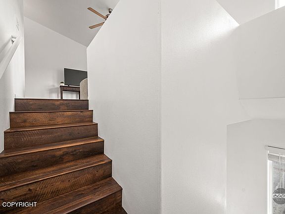This charming 3-bed/2-bath condo is move-in ready, featuring numerous updates to ensure comfort and style. The home boasts new luxury vinyl plank flooring, a new window with a transferable warranty, fresh interior paint, new bedroom carpet, and a heat system well-suited for Alaska's weather. The kitchen gleams with newly painted cabinetry and a modern dishwasher installed in 2021.The upstairs area features an open-concept floor plan with vaulted ceilings, combining the kitchen, dining, and living areas seamlessly with the primary bedroom, which includes custom closets. Downstairs, you'll find an updated bathroom and two additional bedrooms, one of which offers access to a fenced outdoor area and deck perfect for pets or outdoor enjoyment. This condo is conveniently located near shopping, dining, and trails, embodying the best of Anchorage living. Don't miss your chance to own a slice of Southside paradise!