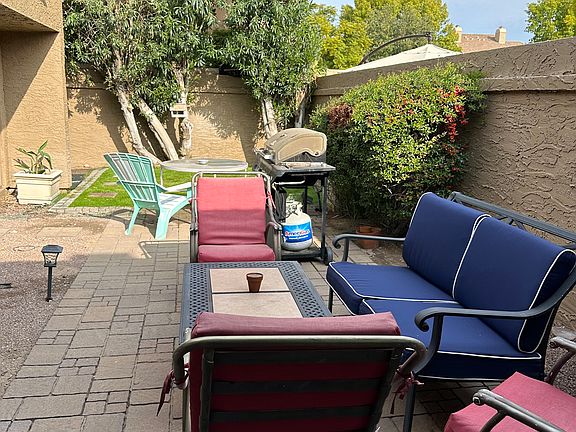 3 Bed 2 bath Garage fully furnished home in the heart of Scottsdale. Sleeps 6 Access to community heated pool and spa. Complimentary Bikes, Miles of biking walking paths out your front door. Small grassy backyard with seating/dining area and Bbq. 300 gallon saltwater aquarium for your viewing pleasure. Walk, bike to grocery store. Very Close to all Old Town Scottsdale. Middle Bedroom has Office set-up. Fully furnished everything included