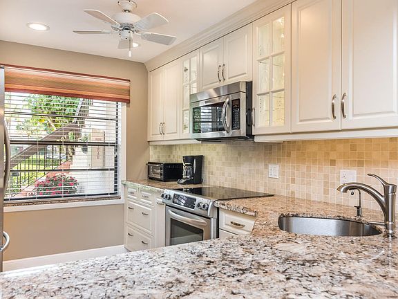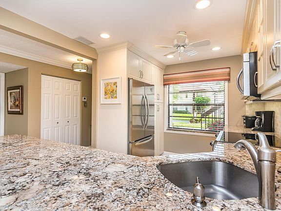 You're Home! Sit back in your enclosed patio with a glass of wine or cup of coffee and enjoy nature at its finest. A bird Sanctuary straight ahead, the beauty of a lush green fairway to your left and the 3rd hole tee off and water to your right. Just bring your toothbrush. Remodeled in the most exquisite taste. New Appliances. W/D in unit. Spacious! Open and totally functional Kitchen finished with all the details YOU want (granite counters). NO MEMBERSHIP REQUIRED! (But golf and tennis are available) Ceramic tile floors throughout, marble counters in bathrooms and much,much more...HOA includes Cable, pest control, exterior maintenance. and more. Come see it today, you'll be ''hooked'' by this perfect ''slice'' of Florida living. It will not last long! (furniture negotiable