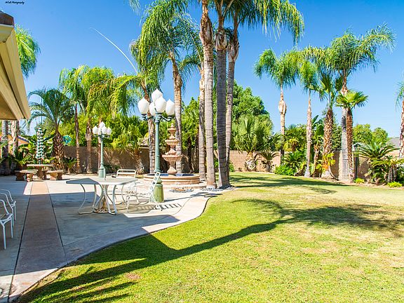 PAID OFF SOLAR!! This exquisite home has it all, from the stunning travertine tile, to the details in the, up to, 12 ft. ceilings with crown moldings, Casablanca ceiling fans and everything in between. It is sure not to disappoint. Enjoy a large cooks delight kitchen with custom granite and a huge center island with salad sink. This home also features a formal dining room and roomy breakfast nook. This masterpiece features two oversized bedrooms and a master bedroom suite with large garden tub and walk in shower. Stay toasty in the winter in a spacious family room with brick fireplace and gas insert. There are plantation wood shutters throughout. And, enjoy the comforts of owner owned paid for solar. The two car garage has custom wood cabinets and (space age plastic) flooring. The exterior features RV parking with custom wrought iron gate, covered patio, elegant water fountain, lush green landscape, and lots of room for family gatherings.
