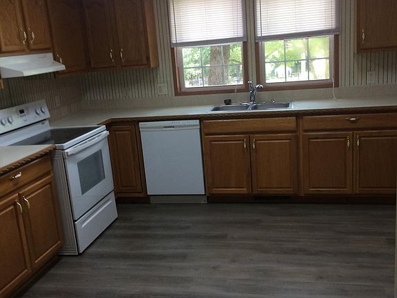 1/2 acre lovely wooded area. Dead end street with a parking and attached garage. No smoking. Outside storage&shop Renter is responsible for gas,electricity,and water (which includes sewage and garbage collection). No smoking in home. Last month rent due on signing. One dog with deposit.
