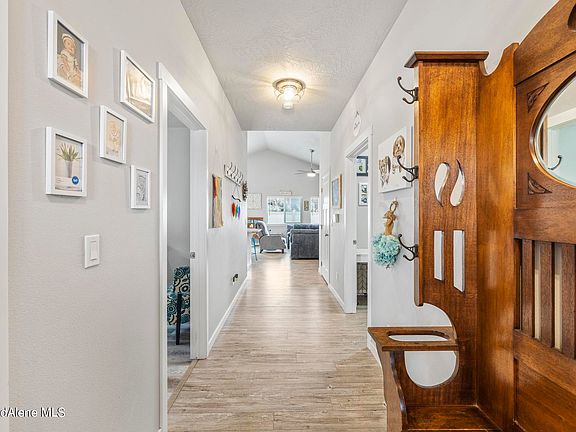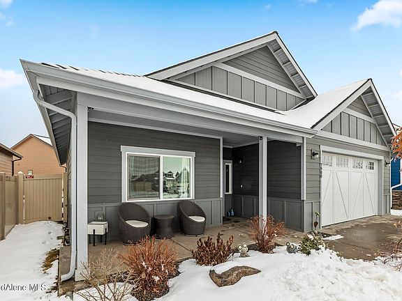 Charming centrally located home in Coeur d'Alene built in 2019 with attention to detail and quality craftsmanship. As you enter the home, the spacious and open layout, that's perfect for entertaining guests. LVP flooring, large windows that flood the space with natural light, and high ceilings add to the feeling of spaciousness. The living room flows seamlessly into the dining area and kitchen. The kitchen boasts ample cabinet space and an island with a breakfast bar, spacious walk-in pantry, perfect for the aspiring chef. The master bedroom is located at the back of the house for added privacy and features a large walk-in closet with a double vanity, and shower. The other two bedrooms share a second full bathroom with a shower/tub combo.