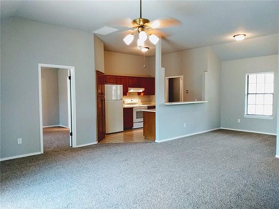 Move-in Ready! This charming light bright and airy 3-2-2 has so much to offer! The perfect home for someone just starting out or anyone needing a one story layout with minimal upkeep in an established, quiet neighborhood. This hidden gem is in a great location, has an open floorplan allowing for ease of movement between the large living room, dining area and kitchen beyond. Enjoy easy maintenance with fresh paint through out, newly installed carpet and c-tile in all wet areas. Living room features vaulted ceiling, c-fan, with a cozy gas start brick wood burning fireplace. Cute open kitchen has breakfast bar, electric stove, dishwasher, garbage disposal and plenty of cabinets for storage. Master bedroom has split floor plan, vaulted ceiling, plant ledge, walk-in closet and walk-in shower. Nice size secondary bedrooms. Open patio and deck are perfect for backyard BBQ's, entertaining guests, gardening or relaxing! Storm shelter in garage. Great double door metal workshop/shed to stay.