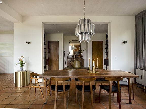 OPEN HOUSE SCHEDULED FOR 10/25 12-2 IS CANCELLED, WILL BE RESCHEDULED. This remarkable contemporary home welcomes at the top of a rise. Nestled on 11 acres of shared conservancy land with inspiring views of Mt Hood. The property is set on .6 acres and bordered by nearly 40 acres of protected forest land. With a gated private drive and exceptional privacy, this property offers a sense of seclusion, while still being conveniently located close to the city. Built in 2001, this Mission-inspired home boasts strong geometric lines, a stucco exterior, and expansive eaves, combining timeless design with modern updates, whole home water filtration and AC. The 4-bedroom, 3.5-bath layout spans two levels, seamlessly connecting indoor and outdoor spaces. The entry features double multi-paned doors and ample storage. An open floor plan with radiant heated Mexican tile flooring throughout flows through the main level, where the living room's double-height windows frame Mt. Hood. Anchored by a wood-burning fireplace, the space is bathed in natural light. The kitchen includes a Sub-Zero refrigerator, double ovens, a 6-burner cooktop, granite countertops, and a cozy breakfast nook. A versatile main-floor office with a gas fireplace, built-ins, and exterior access can function as a den, music room, or guest suite, adjacent to a full bath. Upstairs, the primary suite boasts a private covered balcony, Mt. Hood views, a gas fireplace, and a luxurious ensuite with a jetted tub, double shower, forest views and large walk-in closet. Three additional bedrooms, a full bath, a large den and a laundry room complete the upper level. The outdoor amenities are unmatched: a heated pool, 3 saunas (wood-burning, infrared + electric ) cold plunge, and hot tub—all surrounded by mature trees for privacy. The 8-car garage, with a mini split for heating and cooling, offers gym space and abundant storage. [Home Energy Score = 4. HES Report at https://rpt.greenbuildingregistry.com/hes/OR10234334]
