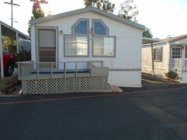 Call Fernando (619) 889-3383. Very Affordable Living! Newer manufactured home that was recently remodeled with brand new guest bathroom. Beautiful kitchen with all appliances included. Front porch entry leads you to the spacious living room. Dining area with large windows. Large master bedroom with private bath featuring a large tub. Good size guest bedroom. Enjoy the magnificent view of the East County Mountains from the porch. Nice private deck in the back. Wonderful location close to the dog park, swimming pool & clubhouse for your enjoyment. Valley View is one of the best all age communities in Santee & it is close to shopping, dining, lakes, hiking and great schools. ID : CB5004A/B Property Features Ceiling Fan Washer/Dryer Refrigerator Garbage Disposal Central A/C Bay Window Deck Skylight Microwave Stove View Park Features* All Age Pets - 1 * Information regarding park rules and regulations should be confirmed with park management. Pool Clubhouse Guest Parking Rec Room