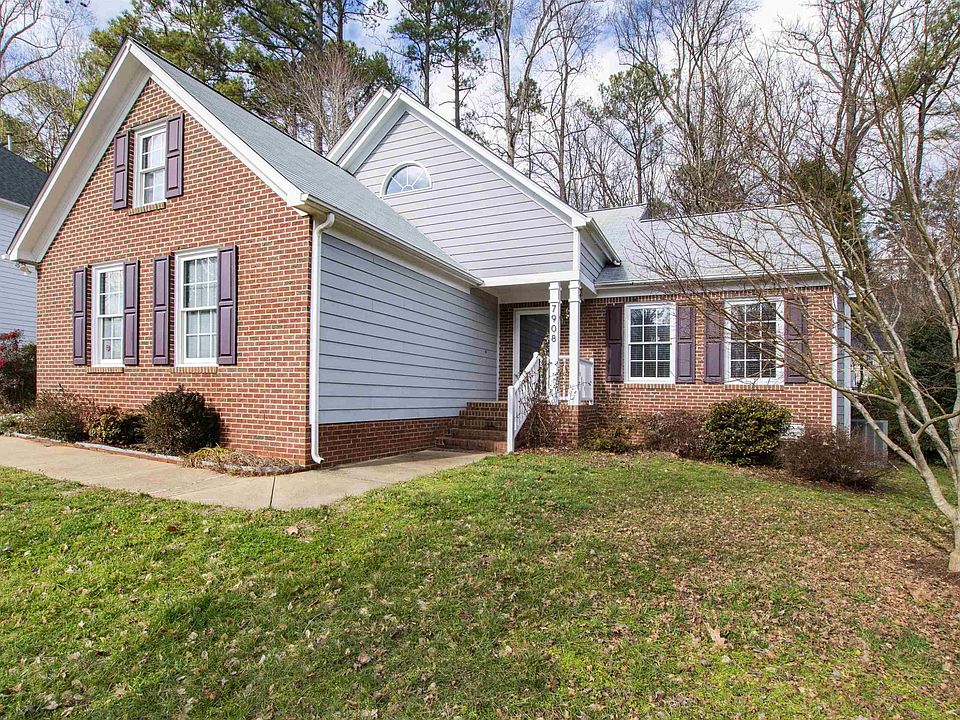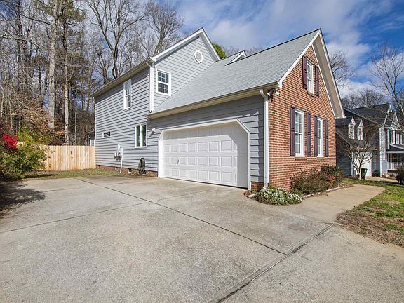 Beautiful home surrounded by cul-de-sacs on a dead-end street in Parklyn Woods. Complete with a first-floor owner's suite, fresh paint throughout, new engineered hardwood floors on the main level and new carpet on the second floor. New stainless appliances in the kitchen, HVAC and rear fence in 2022. Wonderful cathedral ceilings as you walk in the home in the main living and dining areas. Very nice flat, fenced backyard with a gorgeous blooming camellia bush. Two flexible spaces in the home include the sunroom which could be a home office or workout room and the fourth bedroom on the second level could be a bonus room for all to enjoy. Convenient to restaurants, shopping and RDU Airport as well as Lake Lynn and the greenway.