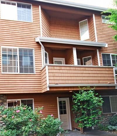 Just 1 block to Greenlake! Tucked away stone courtyard leads to this private townhouse.Bright & spacious dining rm leads to open kitchen w/ plenty of counterspace & storage.Generous-sized living rm features gas fireplace & balcony. Master has vaulted ceilings, skylights, spacious 5-pc bath. 2nd bedrm has private full bath. Main floor has 3rd bdrm/office w/ built-ins. New paint & carpet! Top deck big enough to entertain & offers views of Green Lake! Great location, walk to many area amenities.