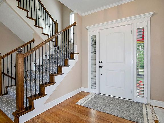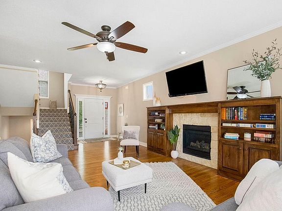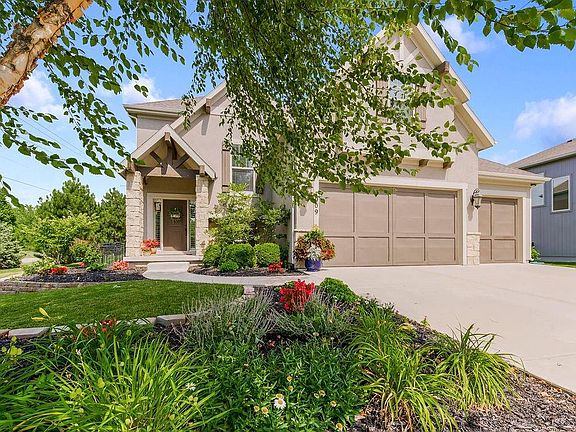Beautiful former Rodrock Destin Model home sits on a large cul de sac lot in the coveted Gleason Glen subdivision. Previous model includes upscale designer decor throughout including carpet, lights, plumbing fixtures & tile. Kitchen features stunning enameled custom cabinets with granite and upgraded backsplash, large island, generous walk in pantry & stainless appliances. Open floor plan with gleaming hardwoods on first floor and cozy fireplace flanked by built ins. Upstairs includes large primary bedroom with en-suite bath, 3 other bedrooms one with guest bath and one Jack and Jill bath. Professionally finished basement with additional bedroom/office, large living space and half bath which can easily be converted to add a shower (already plumbed). Enjoy outside time on the covered patio, around the firepit or in the oversized fenced, sprinklered yard which shines with gorgeous landscaping and plenty of large trees! You can't beat this neighborhood with a pool, Lenexa city park and so many community events! Award winning DeSoto school district!