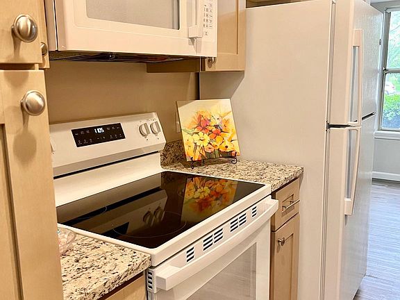 So much to love about this 1st floor, 2-bedroom, 2-bath unit in the Willow Wood Condo Section of Flower Hill! This beautifully updated condo features luxury vinyl plank flooring throughout, a remodeled kitchen with granite countertops, updated cabinetry, a newer fridge, microwave, dishwasher, and a brand new range! The laundry room includes recently replaced full-size washer and dryer, while the HVAC system was replaced in 2018. Freshly painted and professionally cleaned, this unit is move-in ready, with the HVAC system recently serviced and ductwork cleaned. The spacious L-shaped living and dining rooms offer plenty of room to entertain, with a sliding glass door leading from the living room to the patio. Both bathrooms have been tastefully updated. The primary bedroom features an ensuite bathroom with a walk-in shower, while the hall bath includes a tub. Each generously sized bedroom provides ample closet space. The unit will come with 2 parking passes for the occupants and the parking is unassigned (blank spaces). There is ample (marked) visitor parking too. This home is a must-see and located in a lovely community!