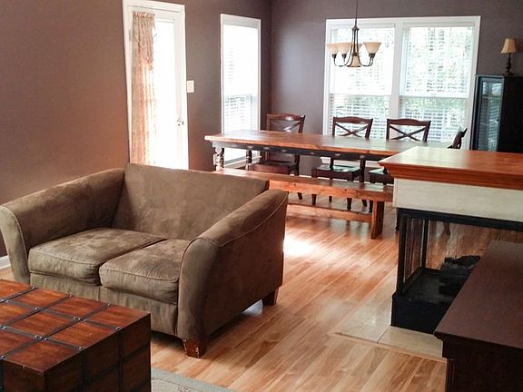 Pergo floors in Foyer, Living room, Dining room, Kitchen and Hall. Master and Bedroom 2 downstairs. Huge Loft and 3rd bedroom upstairs. 3 Full Baths. Kitchen offers smooth top stove and granite countertops with lots of workspace. Large living room offers 3 sided LP gas fireplace. Exterior includes Storage Building, fenced in Dog Run on nice wooded lot.