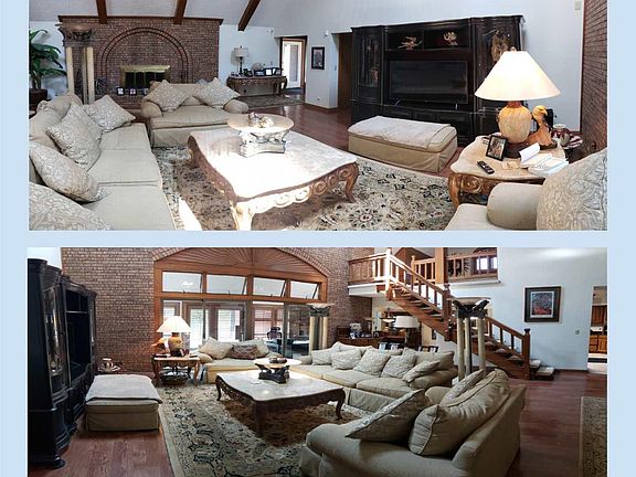 Beautiful corner lot 5 acres with Lake Access. In ground pool. 1 1/2 story ranch with 10 rooms including 4 season room, Granite counter tops, ceramic and hardwood floors. Very open concept, kitchen, dining area and family room 2 car attached garage and 28 x 58 4 car+ detached garage.